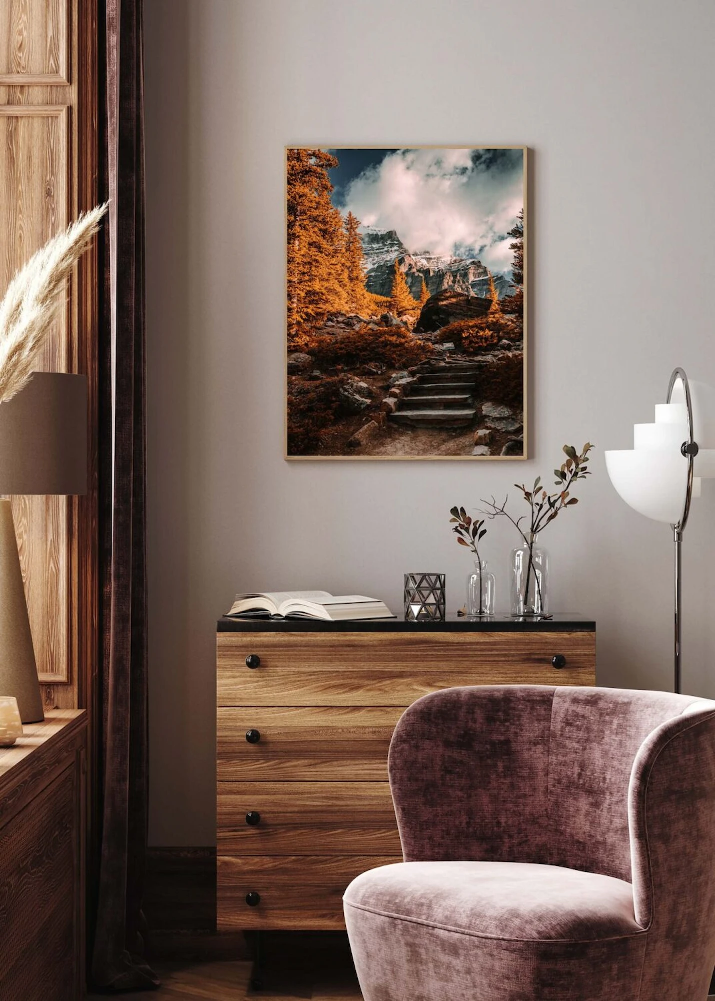 To idealna propozycja dla osób pragnących podkreślić naturalny charakter wnętrza. Jesienne krajobrazy nadają przestrzeni przytulności i elegancji, wprowadzając do niej harmonijną energię.